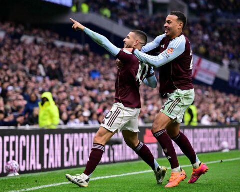 Aston Villa vann 2:1 sigur gegn Tottenham í ensku úrvalsdeildinni í dag