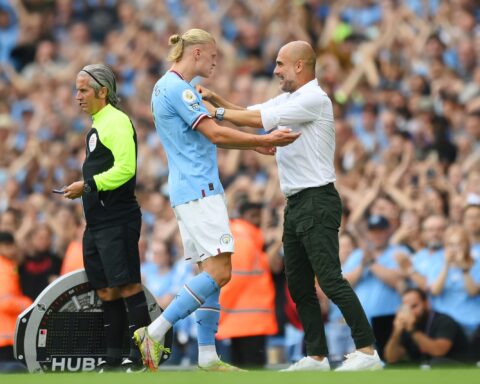 Erling Haaland skoraði mark í sigri Manchester City gegn Brentford í ensku úrvalsdeildinni