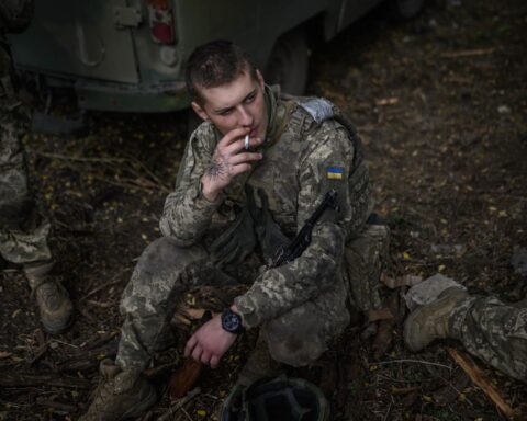Mykola Lebedev, 18 ára úkraínski hermaður, er að undirbúa sig fyrir stríðið.